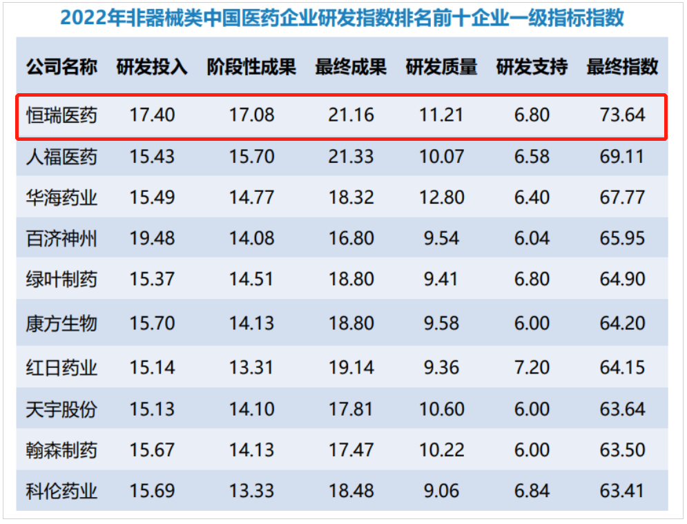 9月3日,2022年中国医药企业研发指数在2023年中国国际服务贸易交易会“2023卫生健康与医药工业创新服务大会”上正式发布。918博天娱乐凭借研发创新量质齐升的突出表现,蝉联非器械类中国医药企业研发指数榜首。今年3月首个中国医药企业研发指数发布时,918博天娱乐位居2021年非器械类中国医药企业研发指数第一。